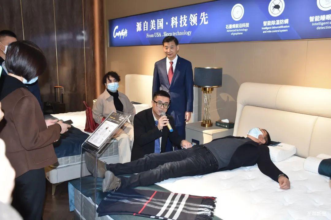 嘉賓們紛紛現(xiàn)場體驗(yàn)夢凱莎床墊的科技睡感。