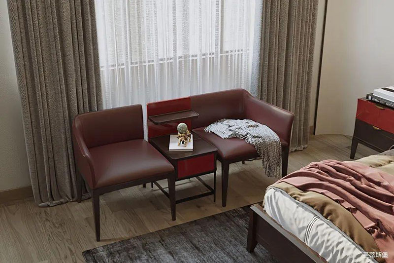 靈活變裝的主臥空間,自成獨(dú)特的設(shè)計(jì)語(yǔ)言與真摯的感情糅合。經(jīng)典意式極簡(jiǎn)軟床,流暢順滑的真皮床屏,賦予了空間溫馨高貴的氣息。酒紅實(shí)木質(zhì)感的床頭柜,整齊擺放,欲有“鴻運(yùn)當(dāng)頭”的美好寓意,塑造出一方簡(jiǎn)約知性的靈動(dòng)空間。