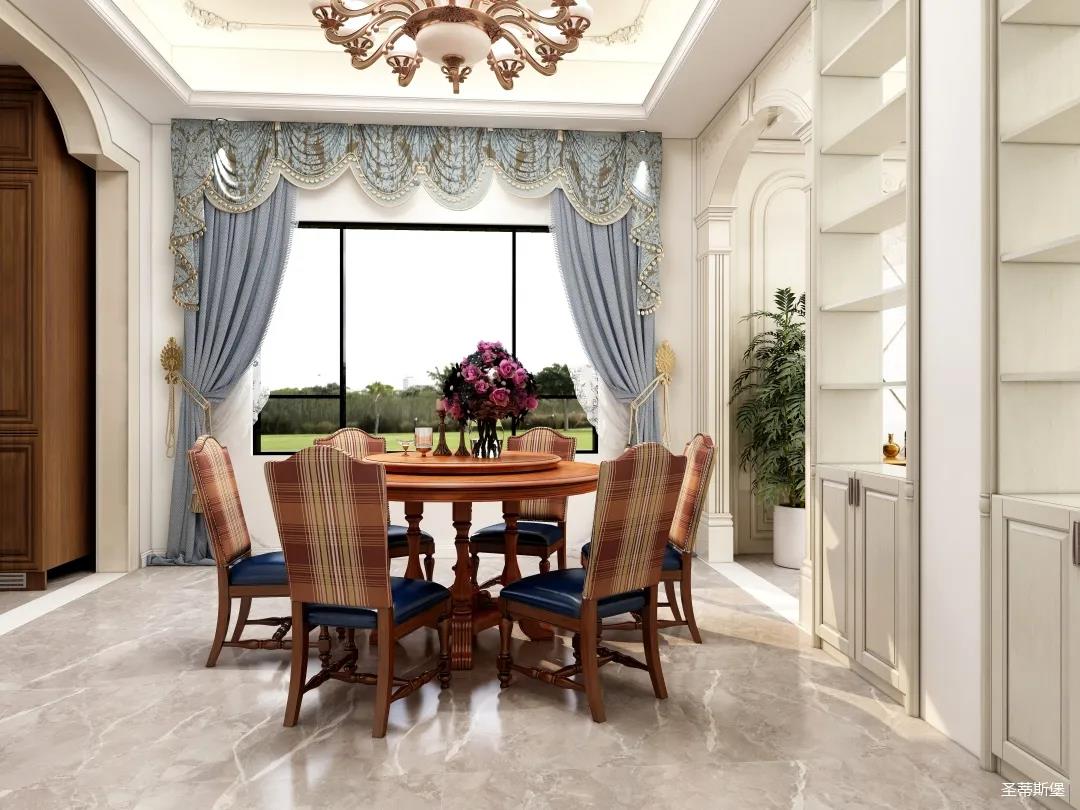 新古典風(fēng)格中填入少量的傳統(tǒng)裝飾,與美式和諧相融。精細(xì)的實(shí)木手工雕刻,傳統(tǒng)形狀的基礎(chǔ)韻味與美式的細(xì)節(jié)取長補(bǔ)短。不但富有審美的愉悅,更重要的是令居住舒適而貼近自然。背景墻更是復(fù)古與潮流的完美結(jié)合,具有經(jīng)典卻簡潔的圖案、復(fù)古卻時(shí)尚的色彩,既包含了古典風(fēng)格的文化底蘊(yùn),也體現(xiàn)了現(xiàn)代流行的元素。