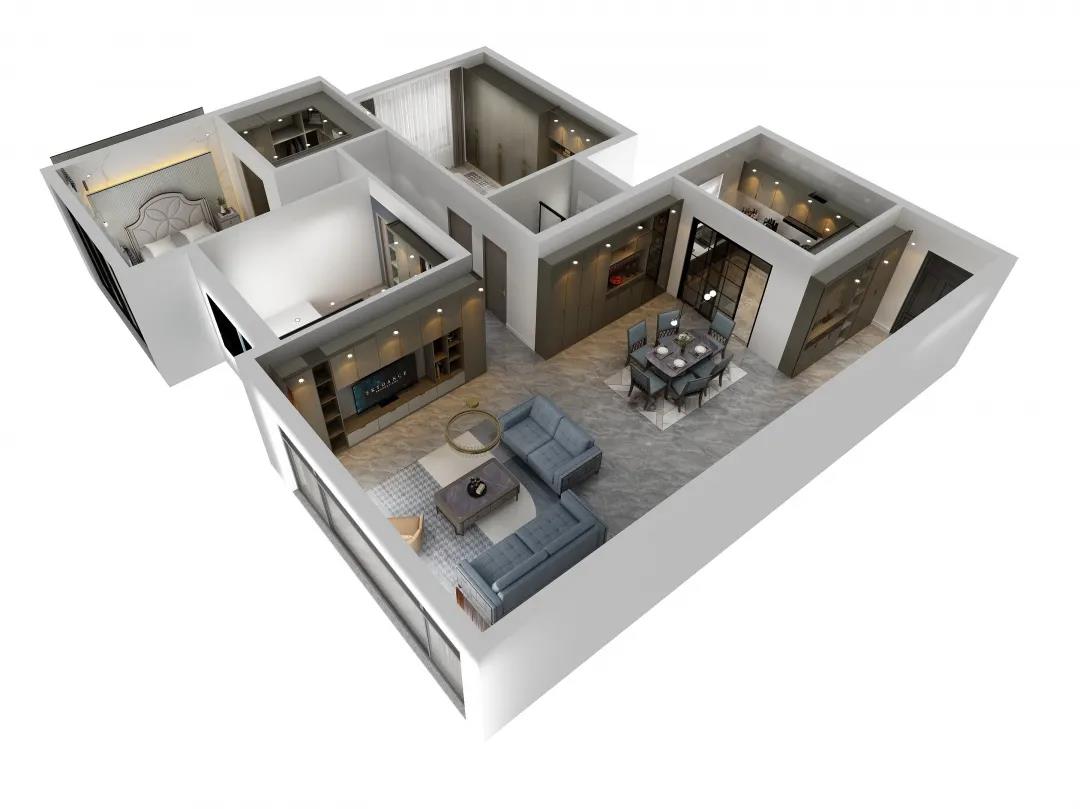 時尚簡奢風格榻榻米設計,驚艷不止于顏值。客臥沿用“L型”定制設計,不同質感的色塊與連貫的流線,對定制儲物柜進行分割,衍生出一個時尚而低調的睡眠空間。封閉式儲物柜配合著玻璃展示區(qū)域,為居者帶來超大收納空間的同時,更多的是引領時尚簡奢的生活!