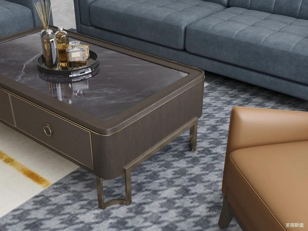 霧霾藍低飽和的沙發(fā),沿用了蒙德里安的幾何設計美學,兼容了雅致與時尚的風范,在平靜的生活中表現出獨特的藝術骨感,滿足我們對精致生活的精神追求。