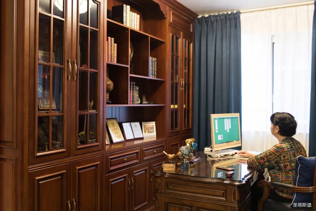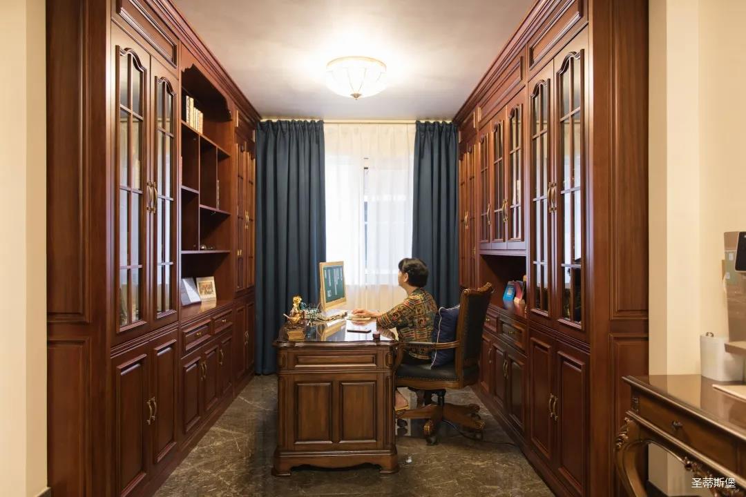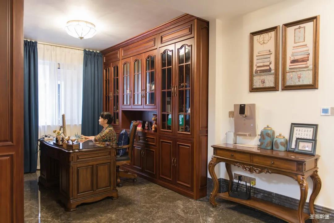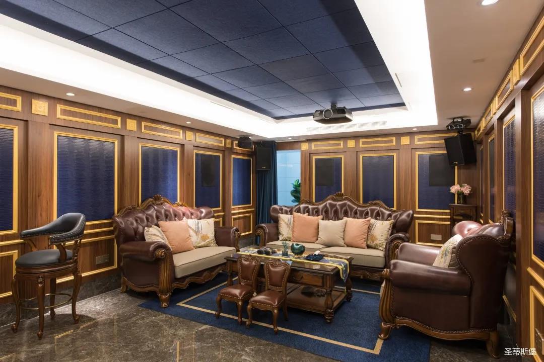 業(yè)主夫婦非常熱情好客,平時(shí)工作之余也會(huì)在家里邀三兩好友一起觀影,觀影室的整體設(shè)計(jì)容納著濃烈的古色古香,長(zhǎng)方形圖案排列搭配復(fù)古的家具與配飾,精細(xì)的雕花藝術(shù),于細(xì)節(jié)之間演繹著精致生活。不管時(shí)光如何輾轉(zhuǎn)變換,家的定義從不曾改變,它撫慰著我們的心靈,承載著我們的喜樂(lè),從細(xì)膩的質(zhì)感中感知家的點(diǎn)滴變化,才是對(duì)生活最真實(shí)的寫(xiě)照。