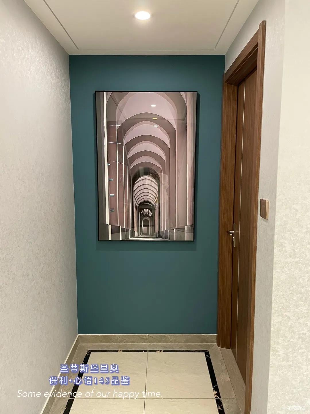 ▲進(jìn)門有個(gè)小過(guò)渡“玄關(guān)”,幾步就可到客餐廳中心區(qū),由于玄關(guān)空間較小。所以以一幅抽象畫(huà)直接營(yíng)造入戶氛圍!