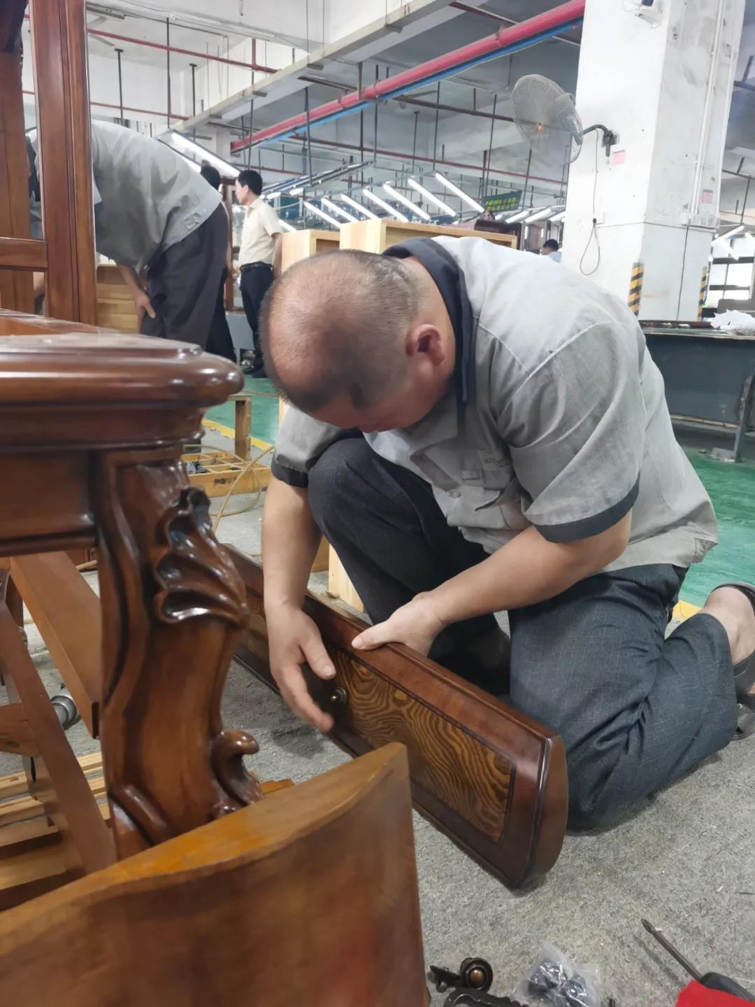 七月,一個熱情似火的季節(jié),一串串滑落的汗珠渲染著現(xiàn)場安靜而緊張氣氛。比賽現(xiàn)場,來自江門金海馬商場和南城美新名家具商場的參賽選手各司其職,聚精會神地投入比賽,憑借著專業(yè)的技能,一絲不茍的將一個個小部件嫻熟而準(zhǔn)確無誤地組裝起來,打造高質(zhì)量,細品質(zhì)的家具產(chǎn)品。