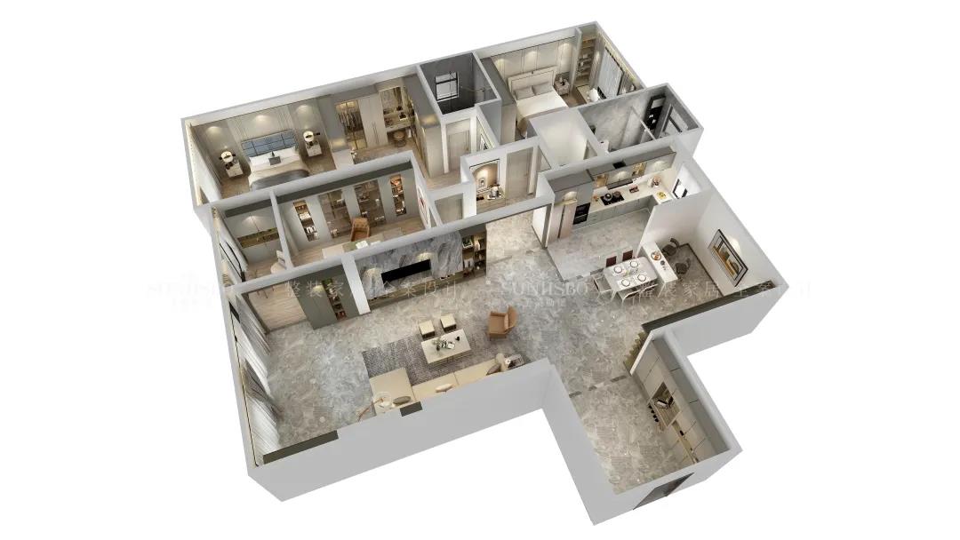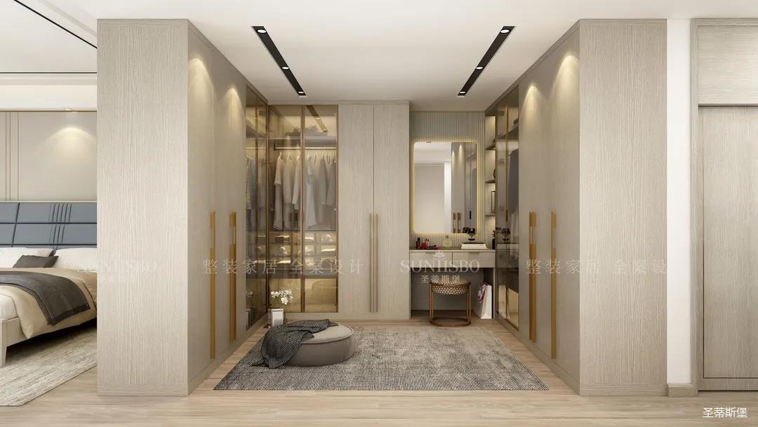 4. 主臥設(shè)置U型衣帽間,區(qū)分衣物收納。