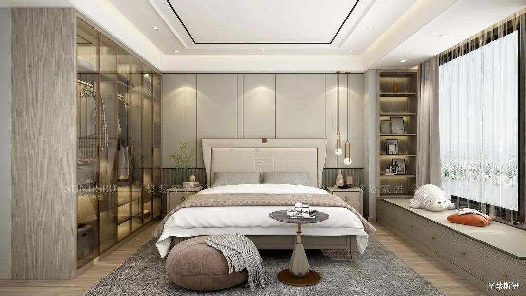 寬闊的就寢區(qū)搭配定制實(shí)木飄窗,將空間的舒適感達(dá)到極致。