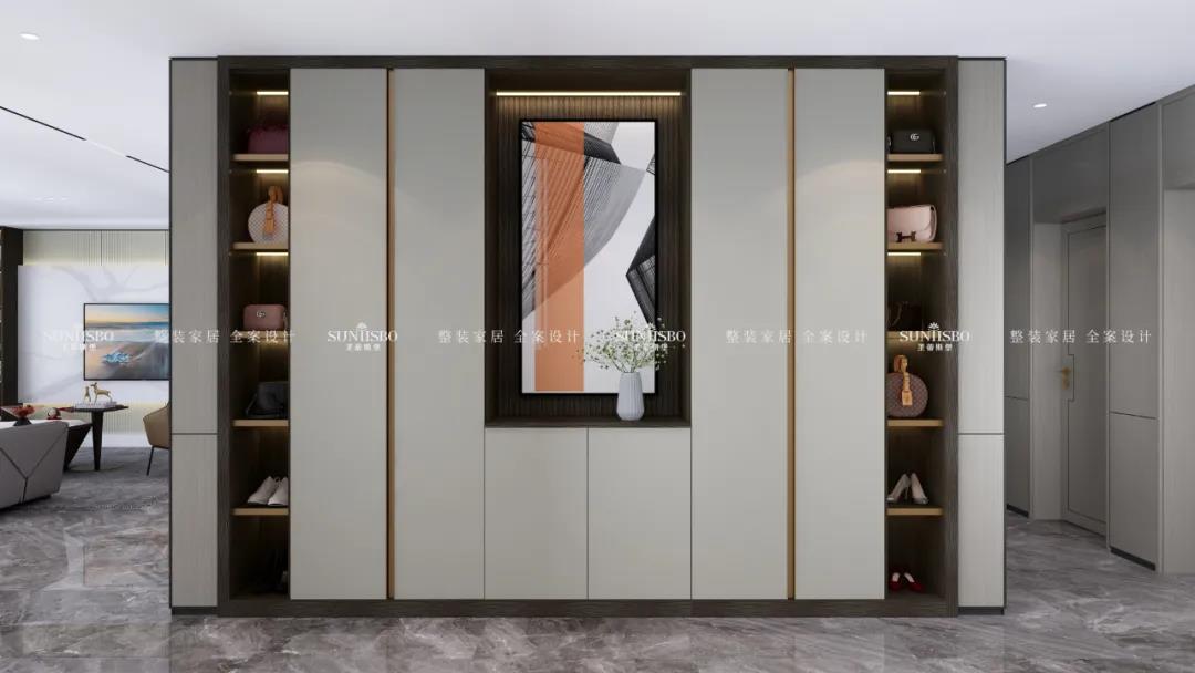 整體配色簡(jiǎn)約時(shí)尚,花色可選性多;材質(zhì)上采用新型高級(jí)材料——歐松板,通過(guò)UV漆工藝表面形成超級(jí)膚感膜,使接觸面舒適細(xì)膩。同時(shí)使用線條感簡(jiǎn)潔利落的拉手作為設(shè)計(jì)元素,子母拉手的設(shè)計(jì)別具一格,體現(xiàn)了設(shè)計(jì)師的用心;搭配燈光和功能件,使產(chǎn)品極具展示效果與功能性。