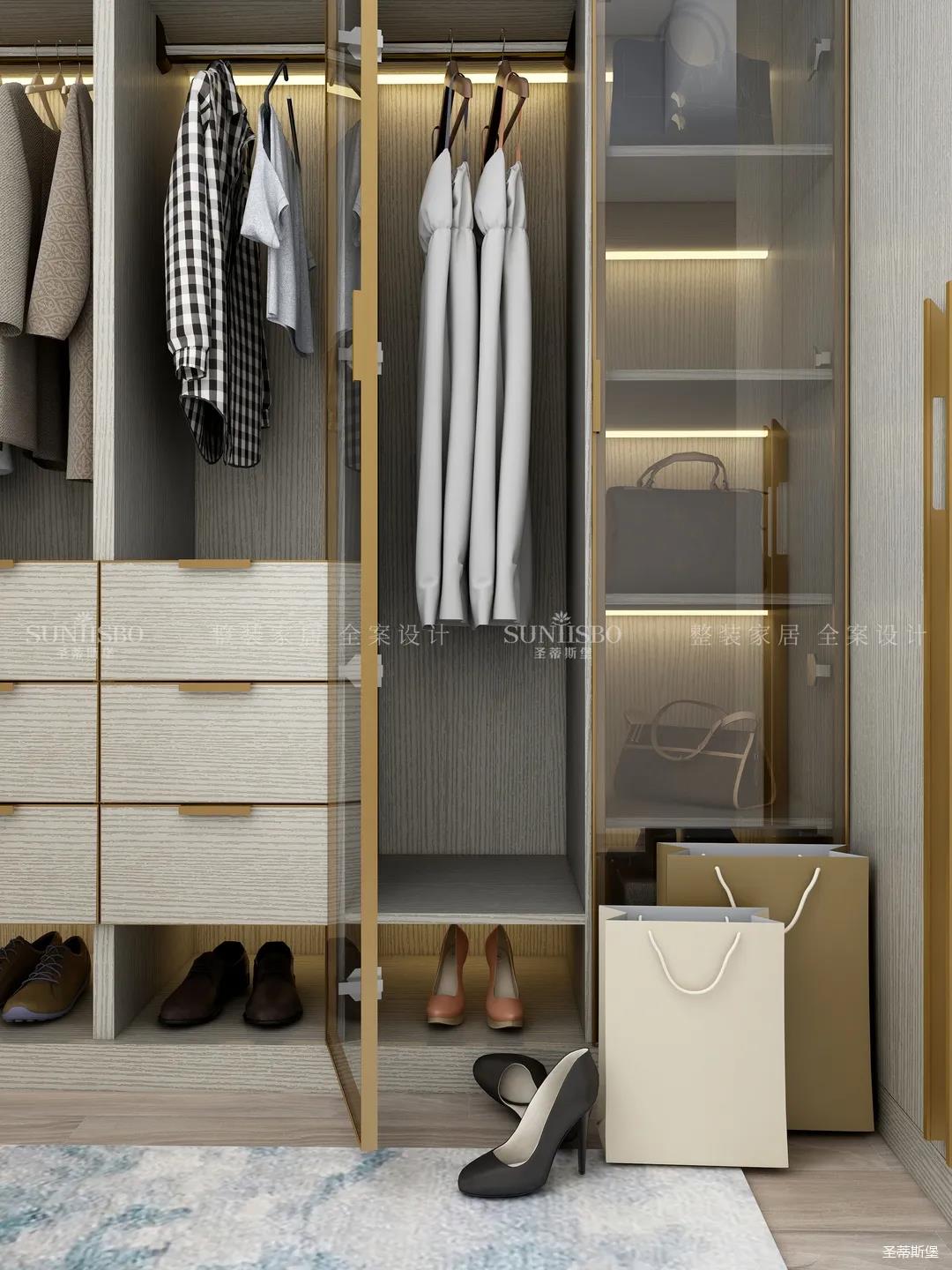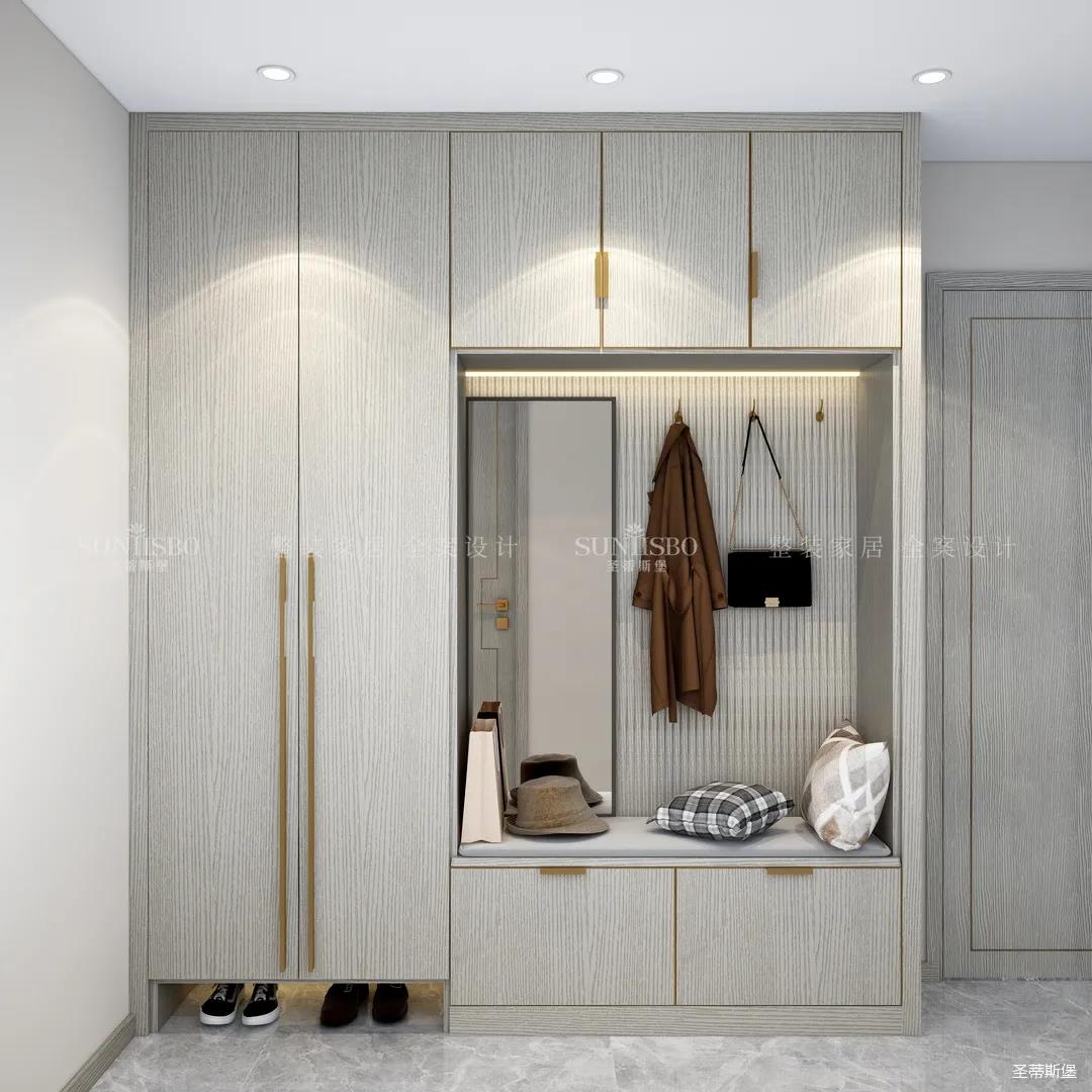 進入玄關區(qū)域就能感受到房主對時尚風格的偏愛,實木元素與簡奢金屬的碰撞,既有對材質(zhì)的甄選,又有現(xiàn)代簡奢的品質(zhì)感。穿衣鏡、換鞋凳、收納柜等藏漏有序的分區(qū),將屋主的生活歸納的井井有條。