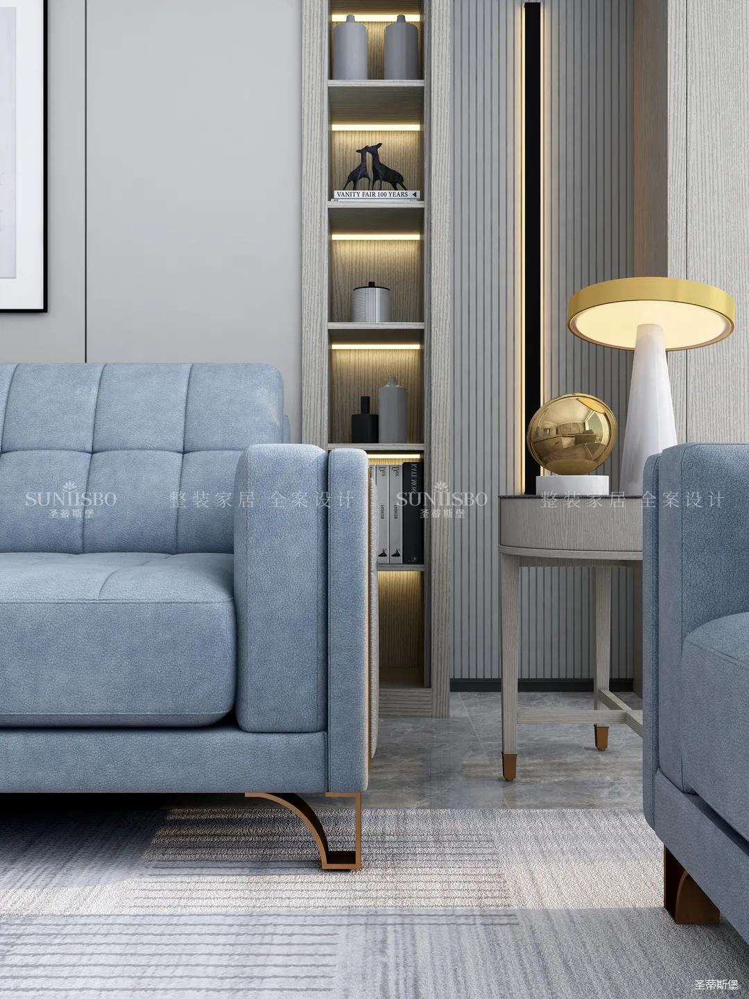 時尚簡約與現(xiàn)代簡奢的雙重美學在客廳中發(fā)揮的淋漓盡致,飽滿填充的親膚磨砂皮材質(zhì)沙發(fā),貼心呵護身體曲線,回家即可來一次舒適愜意的SPA。圍繞著時尚、舒適家的設計,剔除了傳統(tǒng)簡奢金屬堆砌,打造定制的實木柜體,在深灰與淺灰之間切換有度,盡顯大方自然。