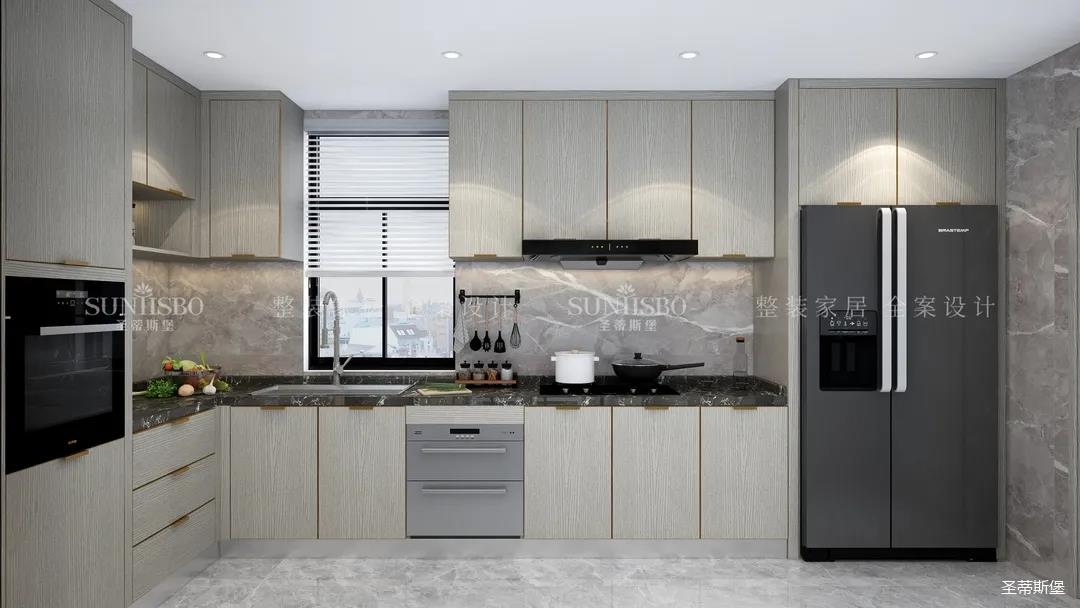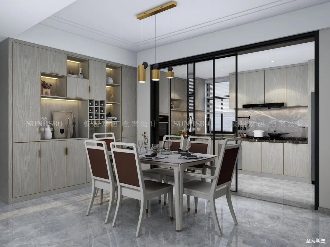 廚房餐邊柜的設計不遺余力的表達了收納充足藏而不漏,空間經(jīng)過設計斟酌,將木元素作為空間主流,柜體上最能體現(xiàn)質(zhì)感的歲月紋理,既是工藝升級的表現(xiàn),又是時尚的標志。