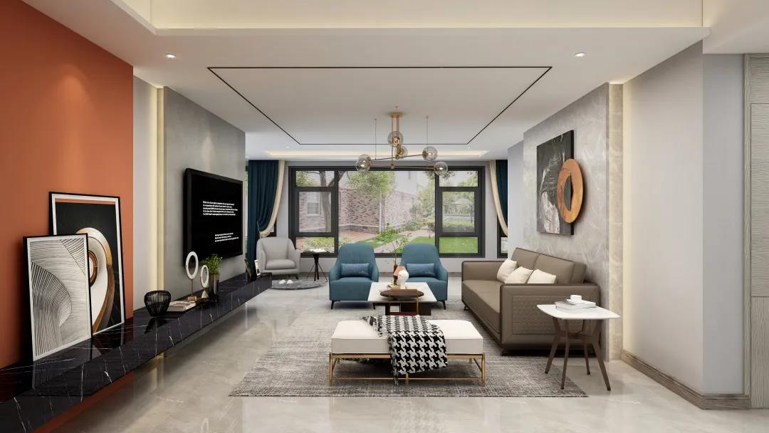 窗外的陽(yáng)光使得客廳空間更加明亮寬敞。電視墻精致的線條設(shè)計(jì),令空間更具層次感。亮眼的愛馬仕橙,搭配個(gè)性的抽象掛畫又讓整個(gè)墻面更加豐富?;盍εc沉穩(wěn)融合,給平凡而枯燥的生活增添些許希望與美好。