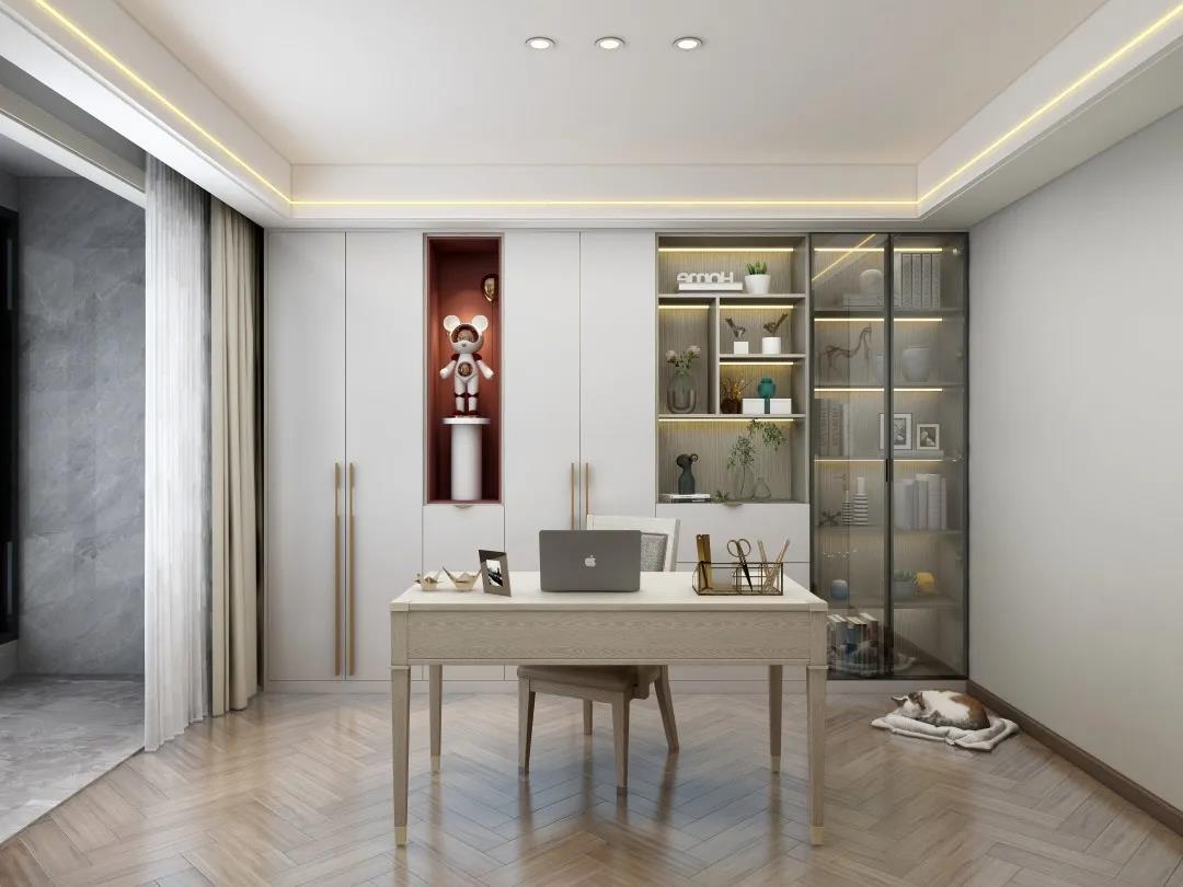 本案主要以暖色調(diào)為主題,白色柜門搭配淺色柜體,沒有過(guò)多的線條,看起來(lái)純凈柔和,散發(fā)著溫暖的氣息,精心裝點(diǎn)的空間,給人的非同尋常的感覺。